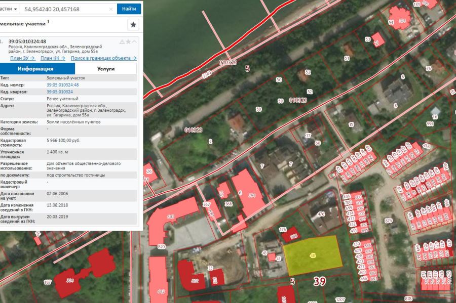 Скриншот публичной кадастровой карты