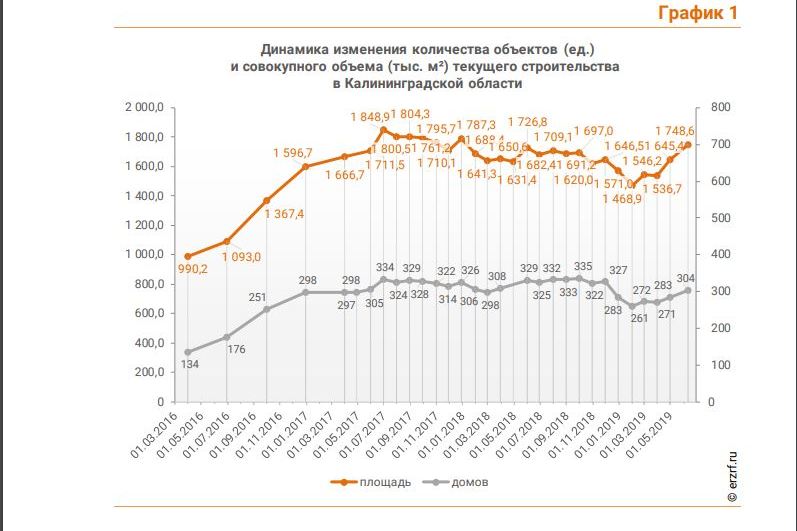 В Калининградской области в настоящий момент идёт строительство 304 домов в соответствии с 214-ФЗ, указано в исследовании Единого реестра застройщиков. Это 35 086 жилых единиц (квартир, блоков, апартаментов), совокупная площадь которых составляет 1 748 582 м². Основной объём приходится на многоквартирные дома (97,6% строящихся жилых единиц). На дома с апартаментами остаётся всего 2,4% жилых единиц. Строительство домов блокированной застройки на территории Калининградской области не выявлено, сообщается в исследовании.