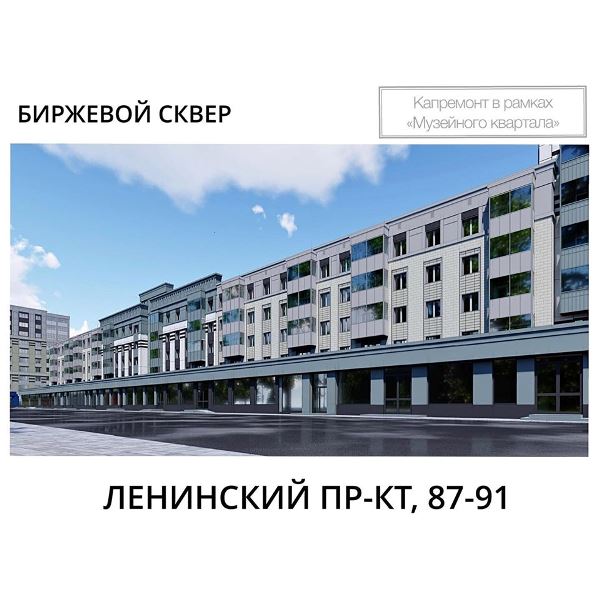 В областном фонде капремонта показали, как будут выглядеть обновлённые дома у Биржевого сквера на Ленинском проспекте. Работы проведут в рамках проекта «Музейный квартал», их рассчитывают завершить в 2020 году.