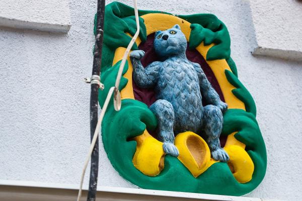 Региональный Фонд капремонта предлагает калининградцам выбрать новую расцветку для барельефа на одном из домов в Железнодорожном. Во время капитального ремонта центра посёлка барельеф с котом выкрасили в яркие цвета — синий, зелёный и жёлтый.