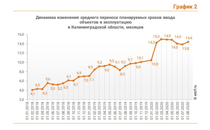 Застройщики Калининградской области в среднем переносят сдачу домов на 14,4 месяца. В августе 2019 года средний срок переноса составлял 9,2 месяца. Соответствующие данные опубликованы в обзоре Единого ресурса застройщиков (ЕРЗ).