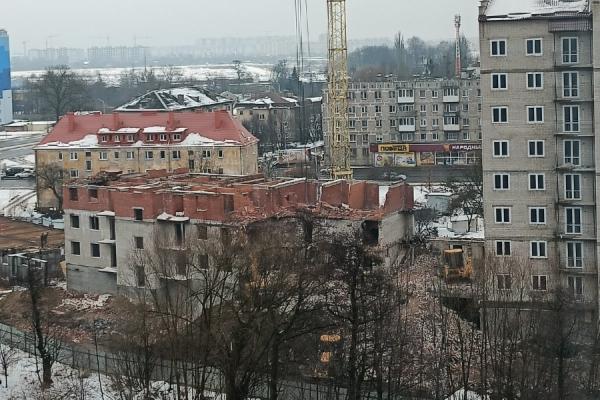 В Калининграде спустя год после возобновления строительства начали сносить несколько секций «проблемного» дома на ул. Гагарина, 135а. Об этом «Новому Калининграду» сообщили очевидцы.