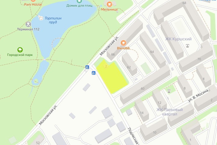 Жёлтым цветом выделен участок под строительство. Изображение: roscadastr.com
