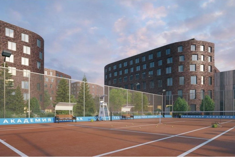 Также на территории комплекса должна появиться подземная одноуровневая стоянка на 208 мест с эксплуатируемой кровлей, на которой расположатся 6 кортов с разными типами покрытия. Рядом инвестор собирается построить тренировочную площадку и открытый корт с трибунами. «Теннисные корты будут соответствовать современным стандартам, что позволит принимать международные соревнования», — отметил архитектор.