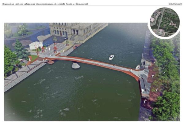 На градостроительном совете представили новую концепцию моста, который планируется построить около исторического здания Биржи (сегодня — Музей изобразительных искусств) в Калининграде. Пешеходный мост должен соединить Старопрегольскую набережную и остров Канта.