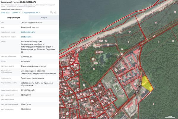 В 2019 году на тот же объект на том же участке разрешение получило ООО «Кранц39». Как сообщал сайт Rugrad.eu, учредителем и гендиректором компании являлся депутат Зеленоградского городского округа Александр Лопатко, однако эти данные по результатам проверки ФНС были признаны недостоверными. Кадастровая стоимость участка, предназначенного для строительства санаторно-курортного объекта, с 2019 года выросла на почти 10 млн рублей до 35,389 млн рублей.