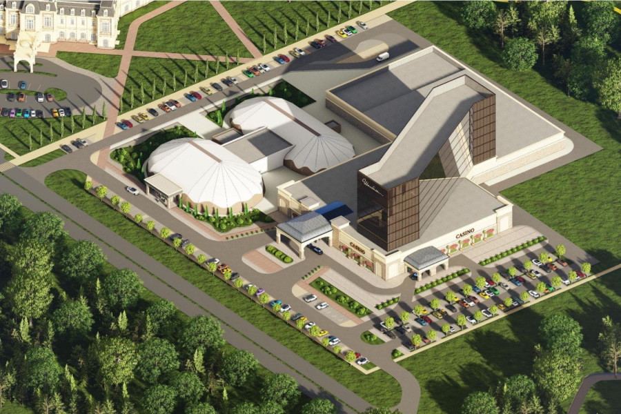 Это первая очередь будущего игорно-гостиничного комплекса. Сначала инвестор планирует поставить шатрообразные конструкции, чтобы открыть казино, а потом уже — приступить к строительству основного 8-этажного здания с отелем и ресторанами. Ранее проект одобрили на заседании регионального градостроительного совета.