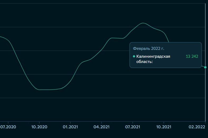 Количество объявлений о продаже снижается с августа 2021 года. По состоянию на начало февраля 2022 года, в Калининградской области на продажу выставлено 13,2 тыс. объектов на вторичном рынке.