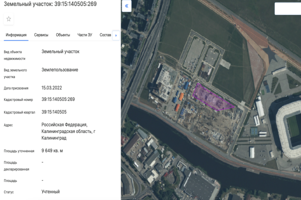 Строительство запланировано на участке с кадастровым номером 39:15:140505:269. Согласно данным публичной кадастровой карты, уточнённая площадь территории составляет 9 649 кв. м. Вид разрешённого использования участка — среднее и высшее профессиональное образование. Кадастровая стоимость составляет 13 979 857,16 руб. Уточняется, что школа рассчитана на 150 студентов. Разрешение на строительство действительно до 6 июля 2027 года