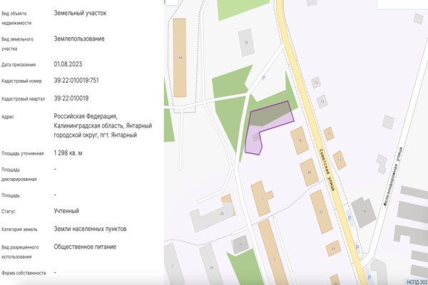 Строительство запланировано на участке с кадастровым номером 39:22:010019:751, предназначенном под общественное питание. Его уточнённая площадь составляет 1 298 кв. м, а стоимость по кадастру — 10 733 408,62 руб. Разрешение будет действительно до 23 января 2027 года.