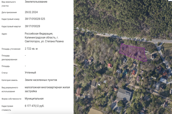 Строительство запланировано на участке с кадастровым номером 39:17:010029:325, который находится в муниципальной собственности. Его уточнённая площадь составляет 2722 кв. м. Разрешённый вид использования участка — малоэтажная многоквартирная жилая застройка. Строительством займётся АО «Специализированный застройщик «Оникс», зарегистрированное в Калининграде на ул. Туруханской. По данным базы контрагентов, директором компании выступает Михаил Комаров.