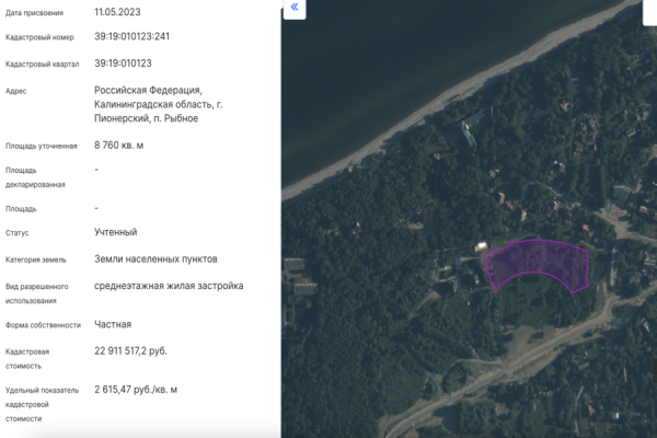 Областные власти выдали разрешение на строительство четырёх среднеэтажных многоквартирных домов в пос. Рыбное Пионерского округа, в 230 метрах от моря. Разрешение получило ООО «Западный ветер» 2 октября. Решение министерства градостроительной политики опубликовано в соответствующем реестре на сайте регионального правительства.