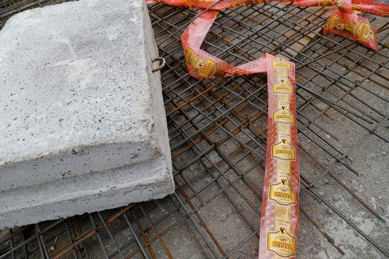 На работах по реконструкции моста на Аллее Смелых используется нестандартная стоп-лента, передаёт корреспондент «Нового Калининграда.Ru». Стройплощадка огорожена лентой с принтом «Колбаса варёная экстра с грибами охлаждённая».