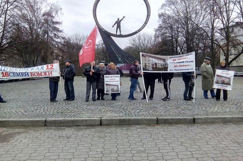 В Калининграде в субботу утром жители дома в Малом Исаково вышли на пикет. Покупатели квартир в доме на Пушкинской, 12, требуют узаконить их жильё, передает корреспондент «Нового Калининграда.Ru» с места событий.