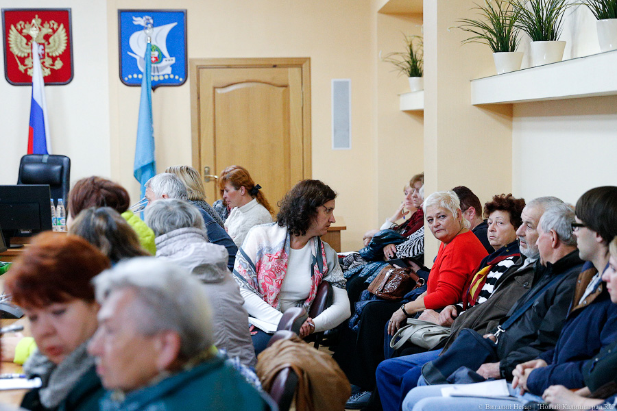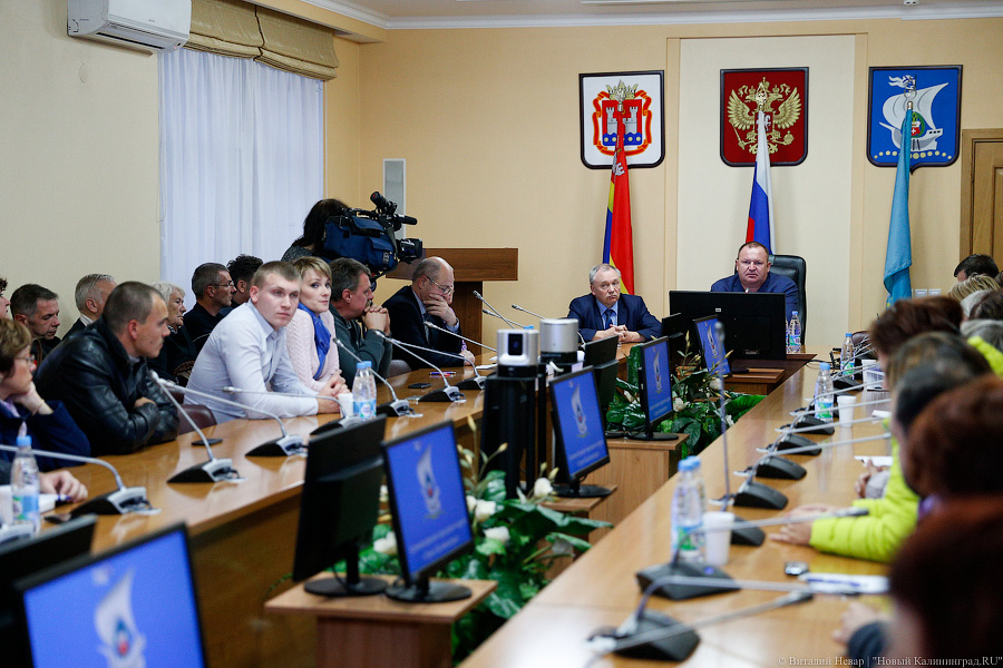 Людей в большой зал мэрии под конец рабочего дня набилось около 80 человек. Люди в ожидании чиновников обсуждали между собой происходящее вперемешку с повседневными делами.
