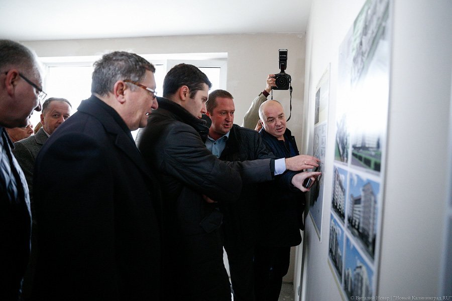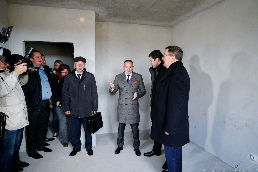 Представитель дольщиков благодарит за квартиры и в конце всё-таки просит помочь с оформлением прав собственности, но открыватели дома уже спешат внутрь подъезда. Вслед потоку журналистов, фактически вносящему в дом врио губернатора, слышен голос ведущего — третья и четвёртая квартира, второй этаж. На втором этаже все влетают в квартиру № 4, оказавшуюся тесной для такой толпы. «Не туда», — охает кто-то из делегации и пытается открыть дверь в квартиру № 3, но оказывается, что одновременно открыть обе двери, когда вокруг еще масса людей, довольно затруднительно. В одной из комнат Алиханов, Бетин и представитель «РосКапа» Михаил Демиденко позируют камерам и что-то обсуждают. «Геометрия, строительные решения, сама архитектура квартир удобна», — слышен голос Демиденко. «И надо сказать, что проект хороший и площадка очень хорошая. Она имеет перспективу развития, поэтому здесь надо развивать стройку дальше», — подхватывает Бетин. Развивать стройку дальше «Российский капитал» действительно намерен. В первоначальном проекте «РосСтроя» эти четыре дома планировалось дополнить ещё четырьмя многоэтажками. «РосКап» намерен достроить и эти дома, а затем приступить к освоению участка через дорогу, который также достался банку «в наследство» от «СУ-155».