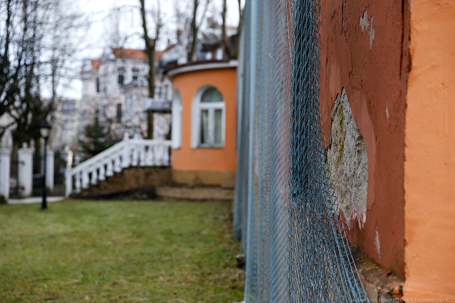 Тихая улица Московская, рядом парк, за ним — море. Сбоку строится многоэтажка, но все звуки вязнут и глохнут в прохладном тягучем воздухе. Мы бродим вокруг трехэтажного немецкого здания с широкой парадной лестницей, балюстрадой, эркерами и обвалившейся местами штукатуркой. Часть фасада завешена сетью. Под ней стена оголилась совсем бесстыже. В этом месте на первом этаже когда-то был ресторан, он не работает уже 15 лет. Гостиница закрыта чуть менее 10.