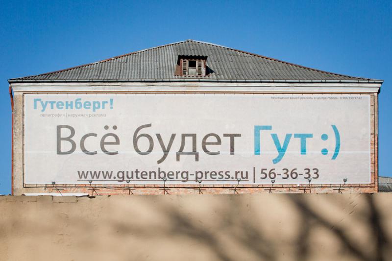 Можно всё, что не противоречит букве закона и здравому смыслу. Менеджеры «Гутенберга» помогут разобраться, как безболезненно получить разрешение, и подберут наиболее удачное решение именно для вашего бизнеса. Также есть масса решений по оформлению интерьера, брендированию автомобилей, печати полиграфии (меню, визиток, буклетов, каталогов), выставочным конструкциям.