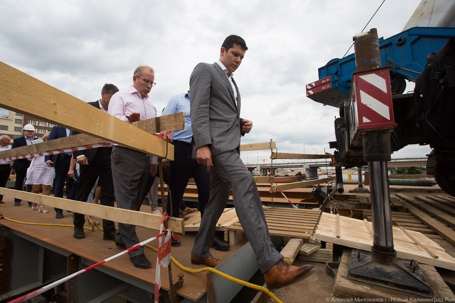 Через несколько минут вся процессия во главе с Алихановым уже мчится через Высокий мост. Врио губернатора решает все вопросы почти на лету — график, сдача, тоннель. «Срок сдачи — 25 ноября, но это чтобы не переносить, если что. А если сдадим раньше на две недели, то ещё лучше», — на бегу отчитывается подрядчик.