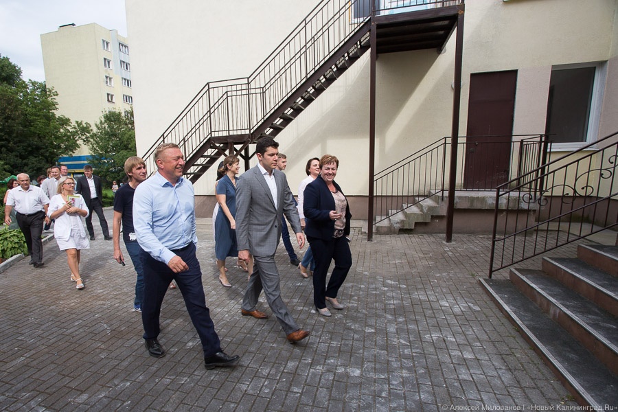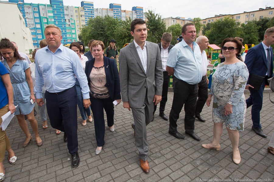 Таким же галопом вся процессия проносится через детский сад на 350 мест на улице Павлика Морозова, недавно приобретённый городом у РЖД. Там также вовсю идёт ремонт, закончиться он должен к сентябрю, однако состояние помещений заставляет в этом немного сомневаться. «Это Балтрайон — экологически чистая зона», — шутят чиновники. «Переезжайте», — немедленно предлагает Алиханов. Все весело хохочут.