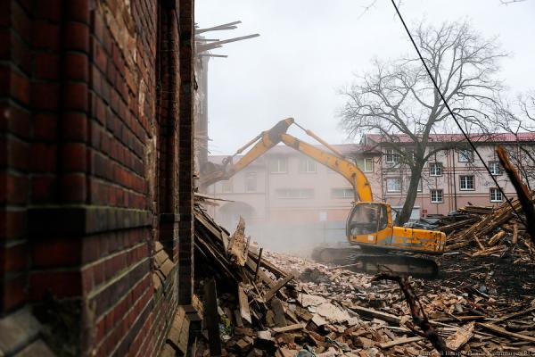 В Калининграде продолжаются работы по сносу здания довоенной постройки на улице Томской.