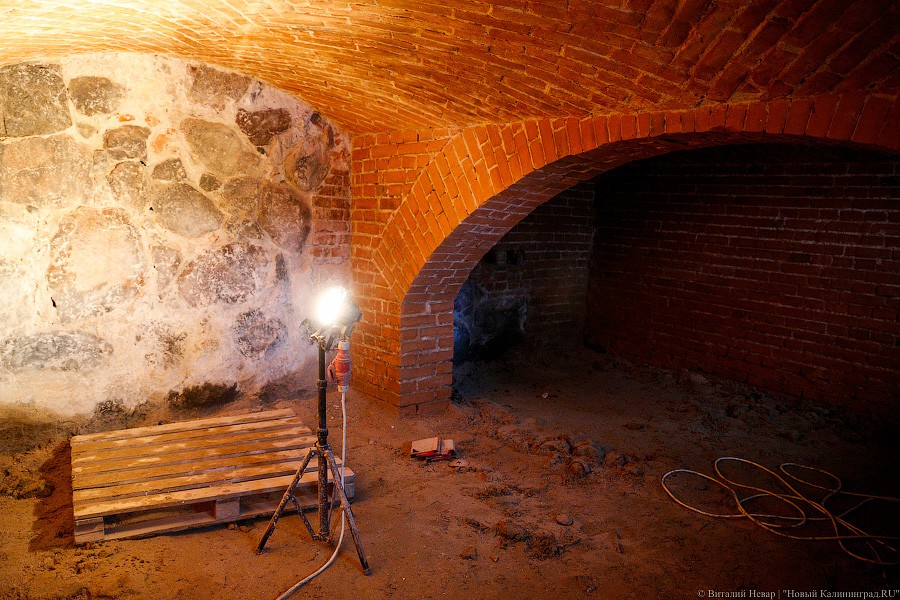 После всех перестроек со времен Канта в пасторском домике сохранился только подвал, сложенный из кирпича и камня. Именно туда в итоге решили отправить тематическую экспозицию, связанную с философом. Перед началом работ в подвале по колено стояла вода, а кирпичная кладка была спрятана под слоями штукатурки. Воду из подвала удалось убрать не с первого раза. «Когда сняли кирпичный пол, обнаружили, что керамические дренажные трубы все разломаны, разрушены. Вода ушла только после того, как вокруг здания сделали кольцевой дренаж», — пояснил Валуев.