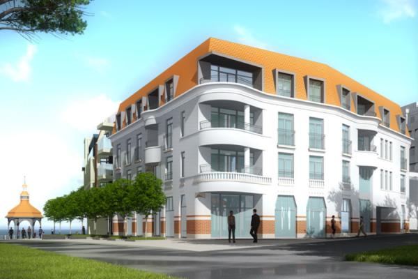 Авторы проекта предлагают использовать три подхода к архитектурному решению отеля. Первый подразумевает использование «традиционных материалов» — кирпича, штукатурки, дерева. Второй Лученко назвал «курортным», имея в виду «идеологию немецких курортных городов» с детализированными фасадами и использованием светлых тонов. Третий подход архитектор обозначил как «постмодернистский», связанный с «переосмыслением форм и созданием новой формы». Итогом всех этих подходов стало следующее решение: фасад, обращённый к городу, оформить в «традиционном стиле», а фасад, обращённый к морю — в современном стиле.