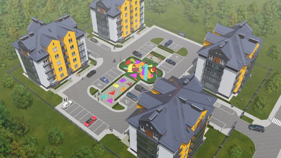 Застройщик позаботился и об убранстве внутреннего двора. Вся территория ЖК огорожена, на въезде будут установлены откатные ворота. Центр двора отдан под зону отдыха и современную детскую площадку.