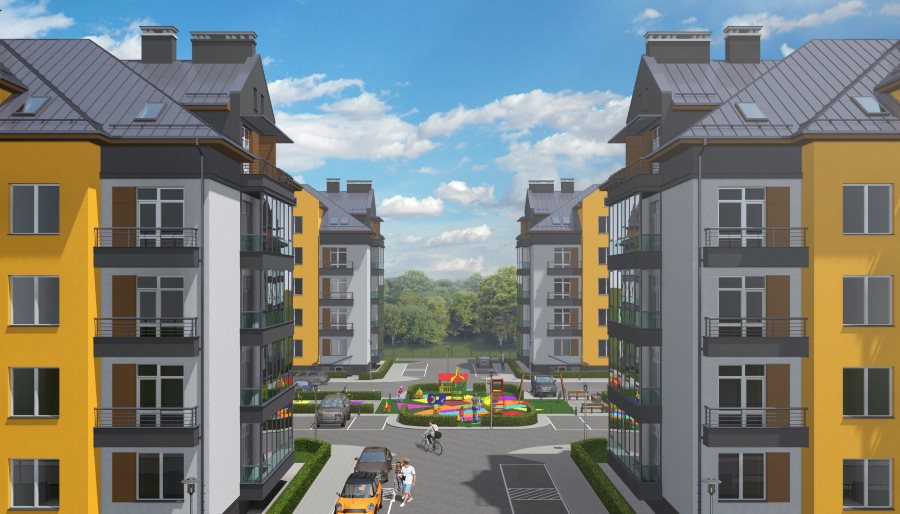 Начнем с визуального знакомства с комплексом. Вероятно, многие согласятся с тем, что жилье должно нравиться не только с точки зрения местонахождения и цены, но и внешне. Приятно испытывать эстетическое наслаждение, уже лишь завидев своё жилище на горизонте. Все четыре пятиэтажных здания в ЖК «Орудийный» выполнены в едином стиле с ярким цветовым сочетанием, панорамными лоджиями и французскими балконами, которые, безусловно, украшают дома.