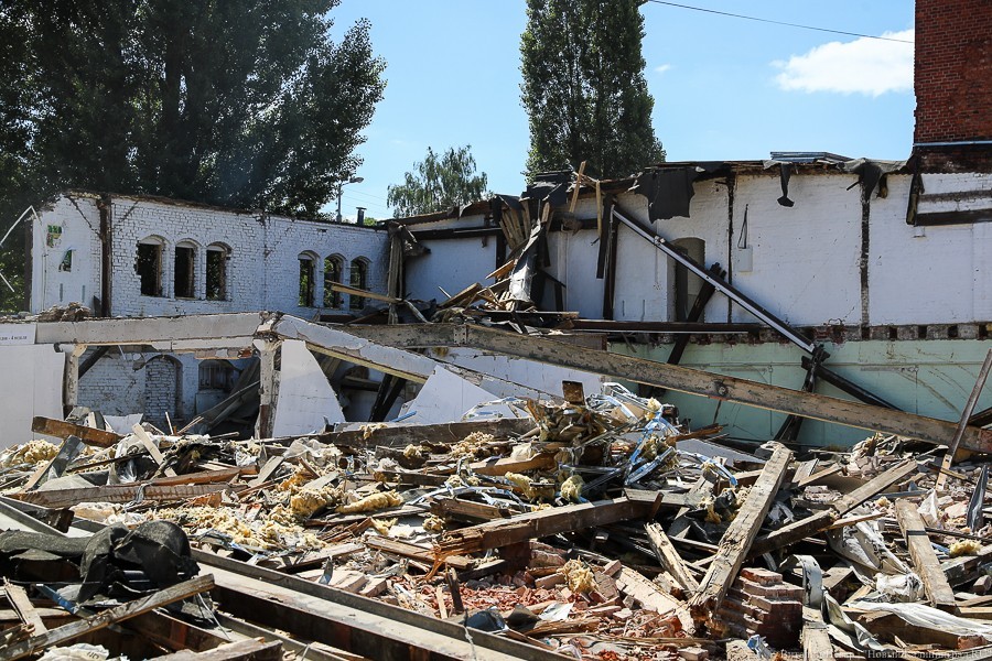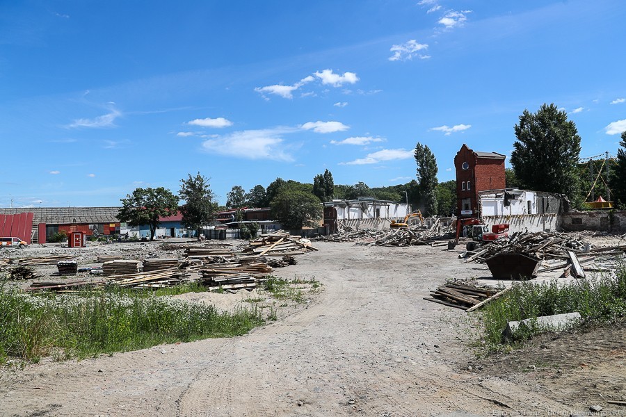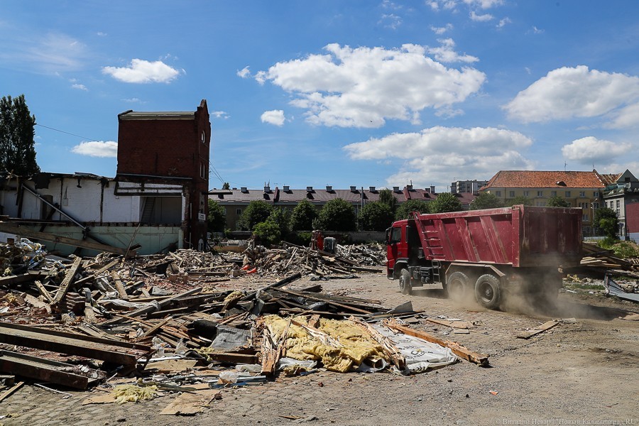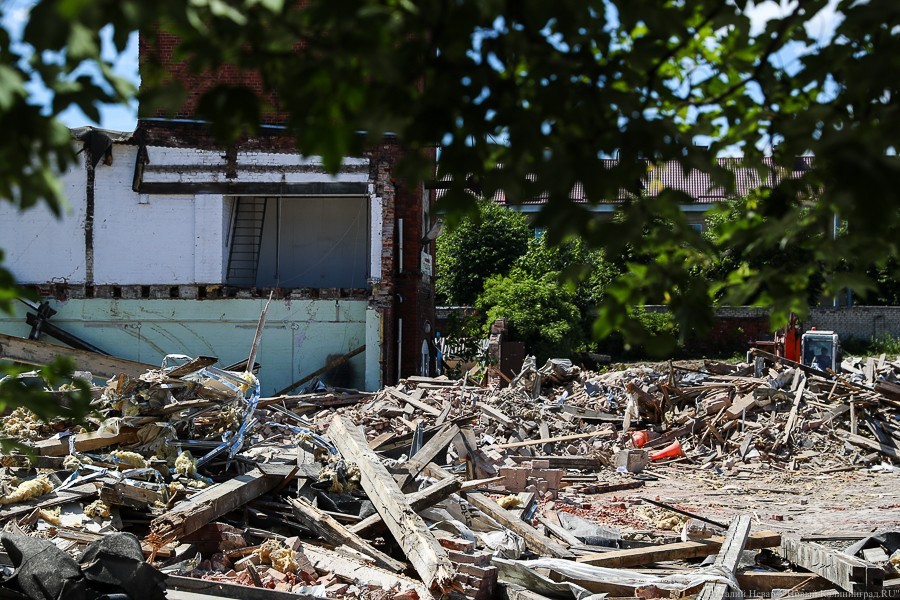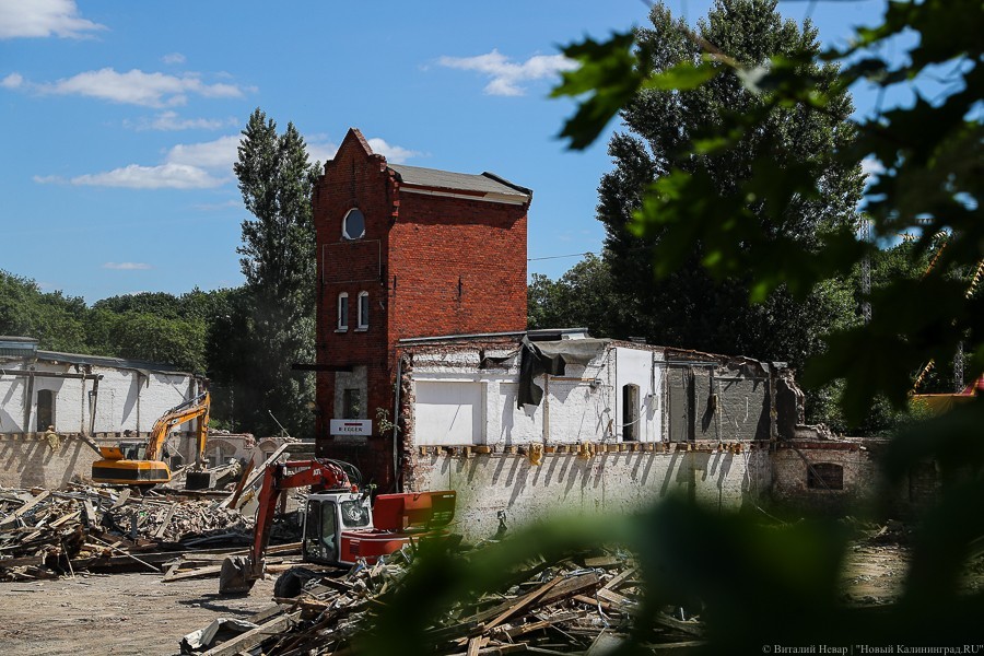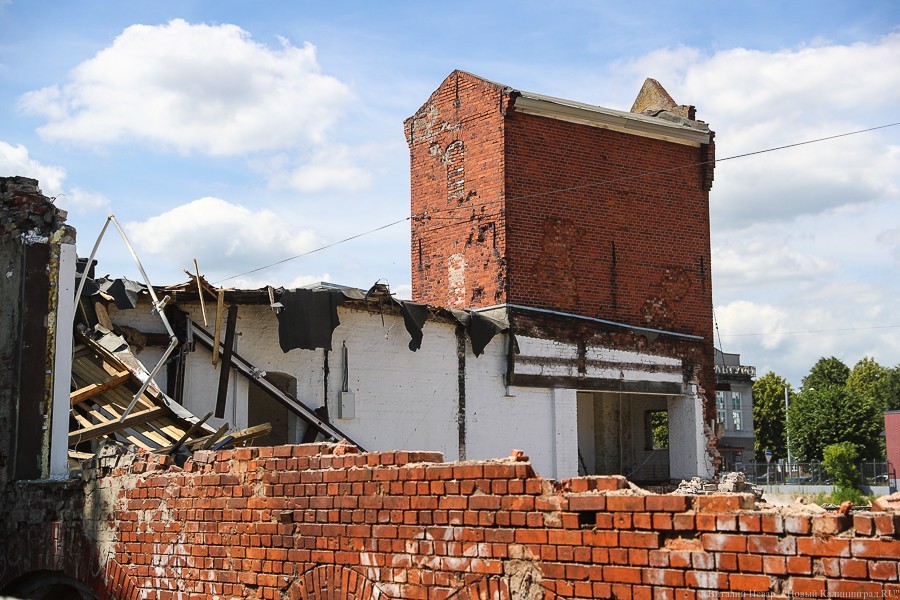 Губернатор Калининградской области поручил приостановить снос зданий, однако строительная техника продолжила работать. К тому моменту от комплекса остались башня и часть фасада.