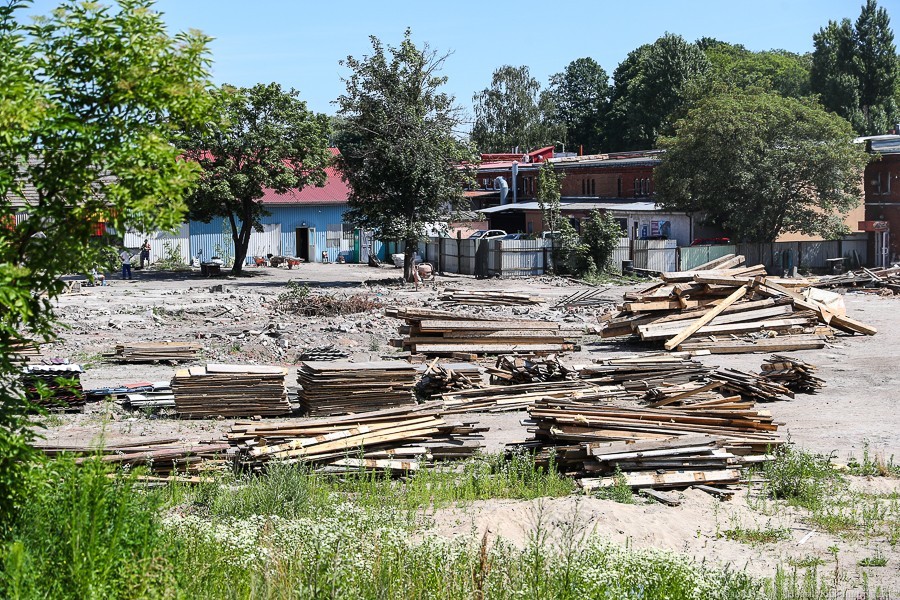 Участок, по данным портала Rugrad.eu, в 2015 году перешёл компании «КомплексСтрой», генеральным директором которой значился Александр Качанович, а учредителем — Ирина Зиненко. На данный момент, по данным ЕГРЮЛ, в качестве гендиректора выступает Альберт Зиненко. Компания зарегистрирована в пос. Невское Гурьевского городского округа на ул. Индустриальной, 19. По этому же адресу зарегистрированы две компании Александра Качановича — «Балтийская бетонная компания» и «Эко-город». На строительном заборе вокруг складов на Калинина висит реклама других проектов холдинга Качановича, известного в связи с несостоявшимся строительством апарт-отеля на склоне в Светлогорске и застройкой территории «Рыбной деревни-2».