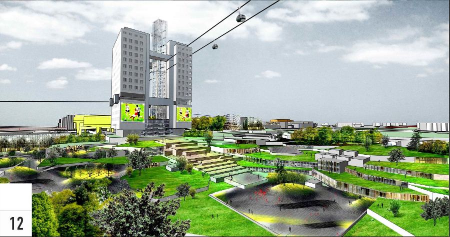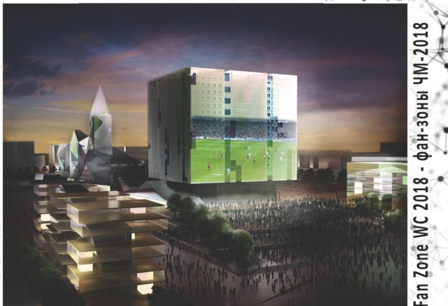 Люксембургские архитекторы также придали зданию кубическую форму и предложили транслировать на его фасаде матчи Чемпионата мира (это был 2014 год, напомним). Команда МАРХИ решила, что здание Дома Советов надо достроить во все стороны и значительно добавила ему объёма «в боках».