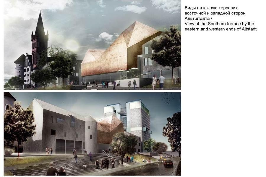 Французский архитектор Жан-Мишель Вильмотт, автор первоначальной концепции стадиона к ЧМ-2018 в Калининграде, в своём проекте превратил Дом Советов в стеклянный «Гиперкуб». «От него к реке спускается террасированная рекреационно-досуговая территория с перетекающими плоскостями и зонами с системами пандусов и лестниц. Инфраструктура развлечений, шопинга и общепита позволяет провести здесь весь день», — отмечено в пояснительной записке к проекту.