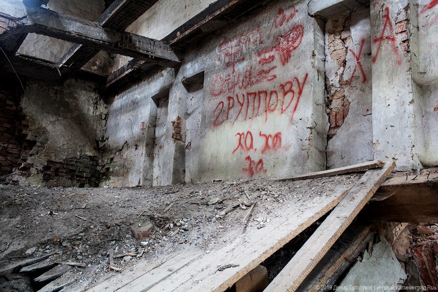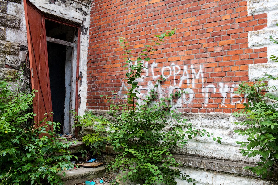 Судя по внутреннему состоянию здания, «народ» в нем не только пьет, но и жжет костры, и гадит. Здание, где когда-то лечили животных, теперь представляет собой общественный туалет. Несмотря на то, что оно хорошо продувается сквозняком, хочется как можно скорее выйти наружу.