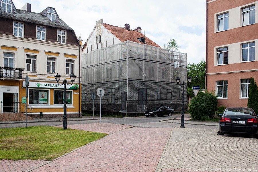 Двухэтажный дом из красного кирпича по улице Калининградской (бывшая Samlandstrasse) — один из кандидатов на получение «культурного» статуса. Здание построено в 1911 году. До войны его занимал ветеринарный врач по фамилии Рихтер, он же был хозяином построек вокруг.