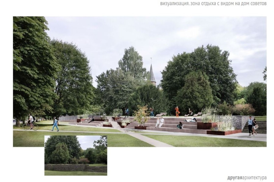 Контракт на проведение работ власти заключили с гурьевской компанией «Обмен плюс». Эта же контора занималась благоустройством парка «Муза» в Светлогорске. К работам подрядчик, как утверждает Генне, приступил несколько недель назад. Начали со снятия покрытия у Кафедрального собора и эстакадного моста. Гранитные плиты от эстакадного моста планируется перенести к Кафедральному собору и уложить их вдоль стен, а также у входной группы в здание.