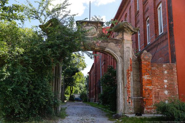 Портал в стиле рококо появился на Хайдеманштрассе — нынешней улице Черепичной в Калининграде — во второй половине восемнадцатого века. Историческое строение, до недавнего времени наполовину скрытое за ветками кустарников, служило въездными воротами на территорию Лёбенихтского госпиталя. Сегодня экскурсоводы показывают его туристам, а общественники пытаются привлечь к объекту внимание потенциальных инвесторов. «Новый Калининград» рассказывает, в каком состоянии находится строение и что предпринимают активисты.
