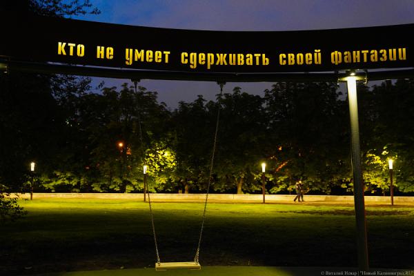 В целом, роль философа на острове имени его свелась к должности распорядителя аттракциона. На огромных качелях в парке по кругу можно прочитать про звёздное небо и моральный закон, а его могила в ночи горит инфернальным красным светом. Всех уходящих с острова вечером провожает огромная светящаяся голова Канта в кроне дерева у Медового моста. «Это такой арт-объект, просто голова Канта. Она ни к чему не обязывает, это такой перфоманс световой», — говорит Вячеслав Генне.
