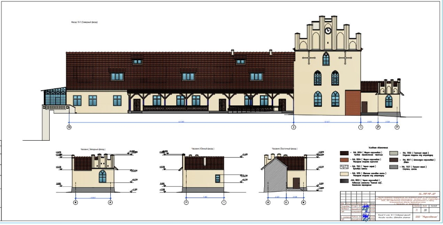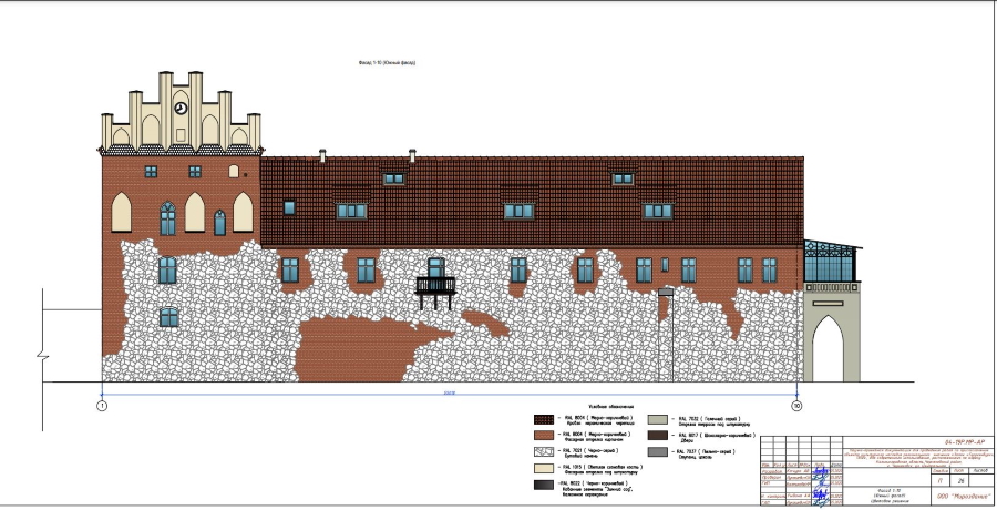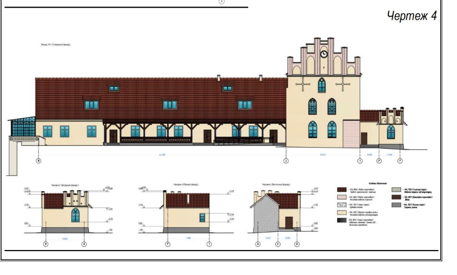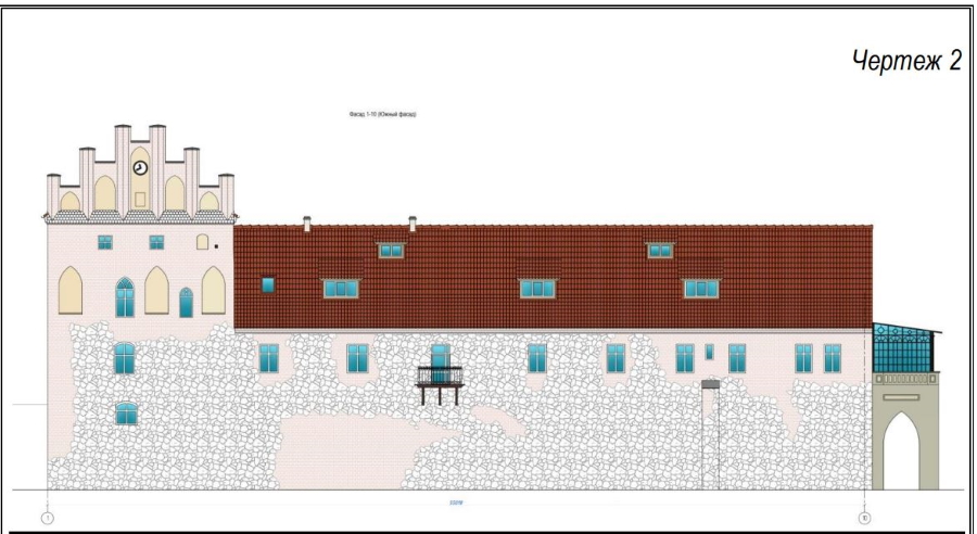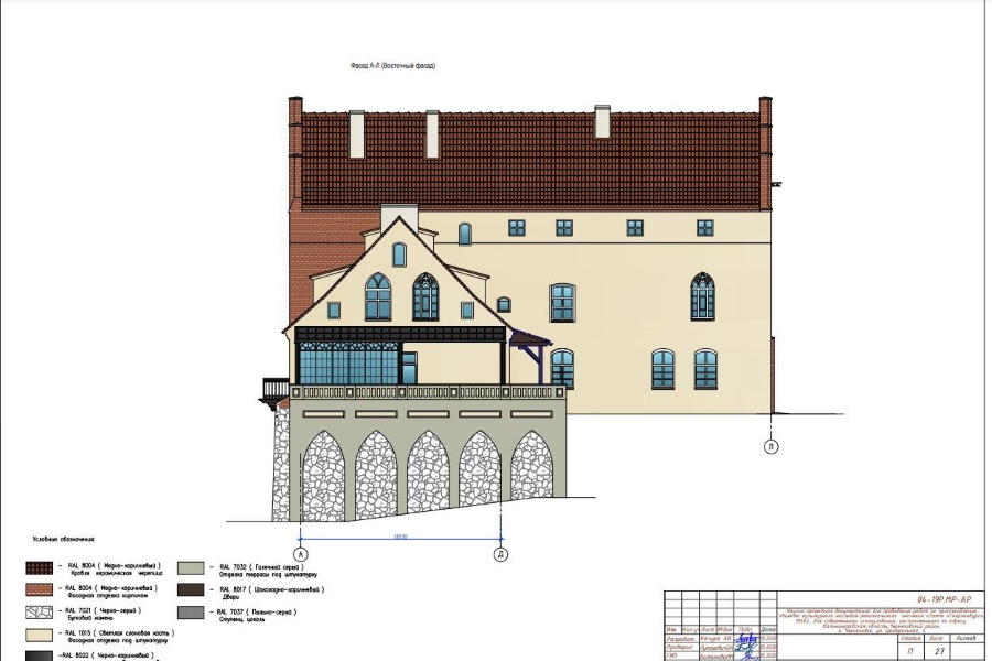 «Общее композиционное решение здания характеризуется неоготическом стилем, все работы по приспособлению здания производятся с сохранением существующих архитектурных элементов. Наружная отделка замка выполнена в следующих материалах: металл, штукатурка, дерево. Кровля здания — керамическая черепица. Замена заполнений оконных проемов производится с использованием аналогичных материалов», — указано в документе.