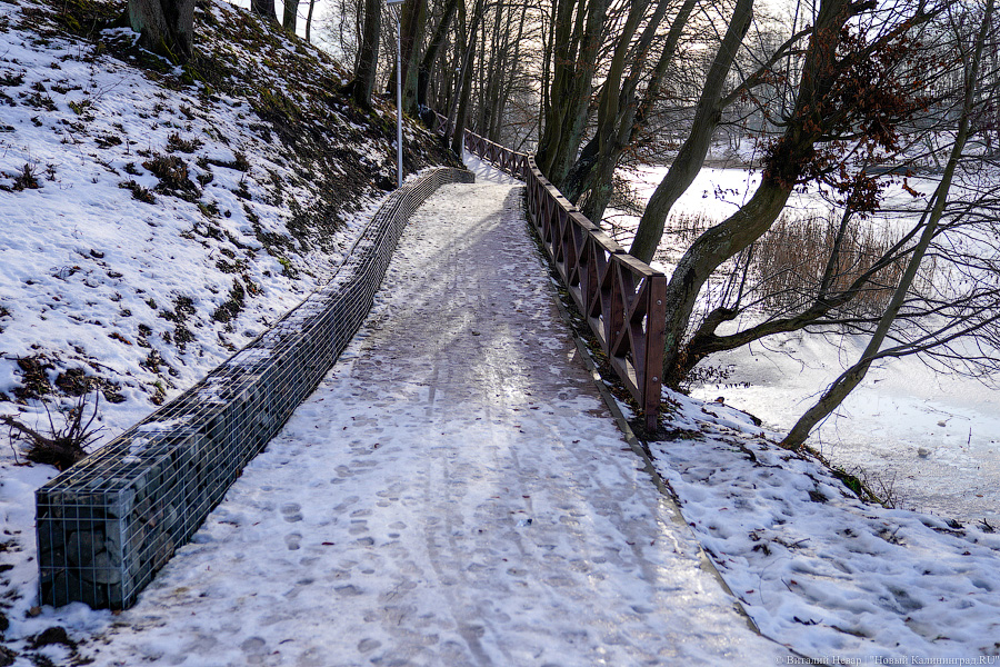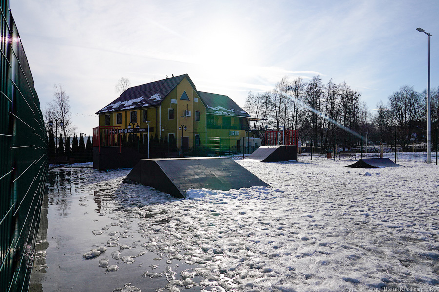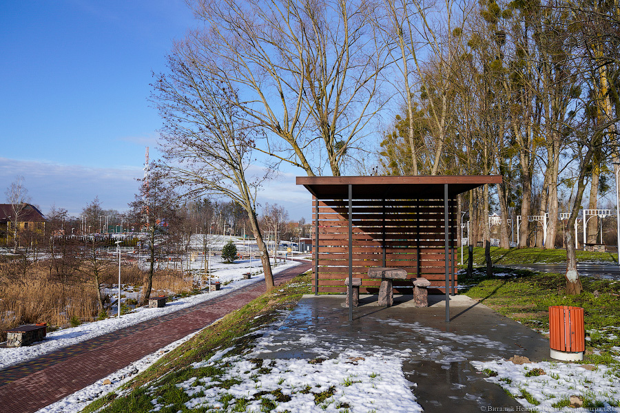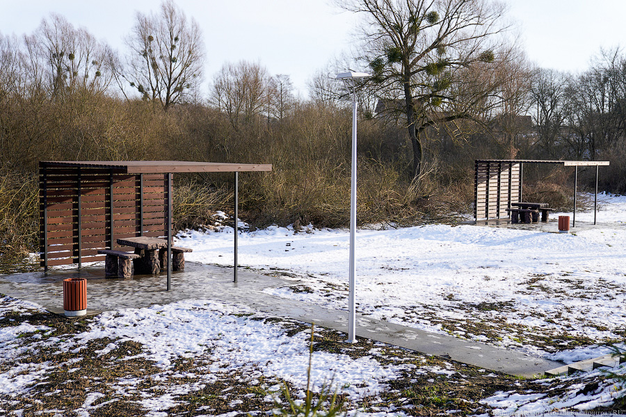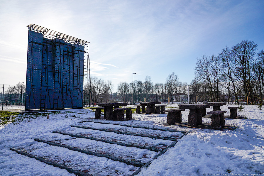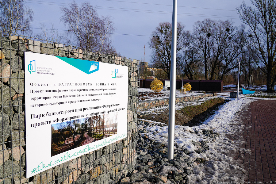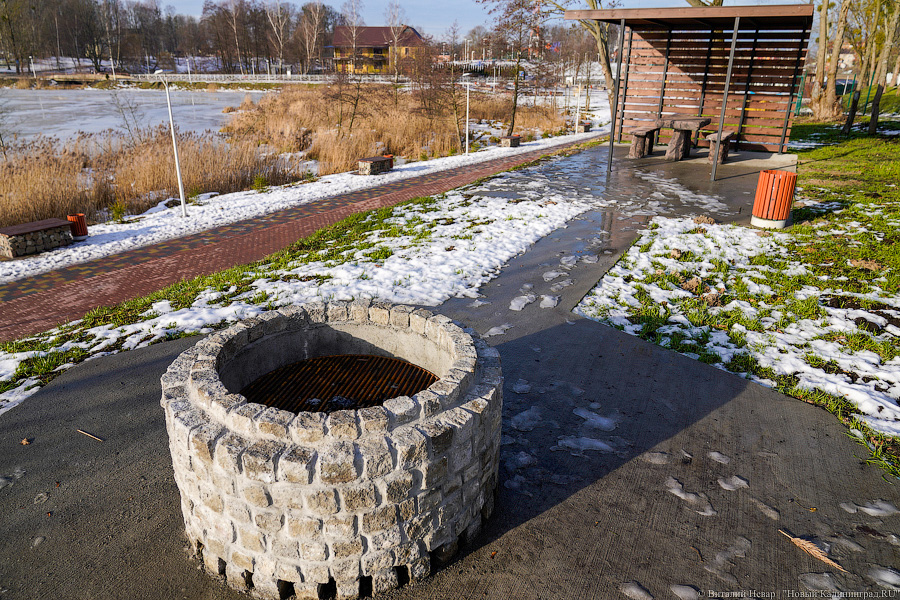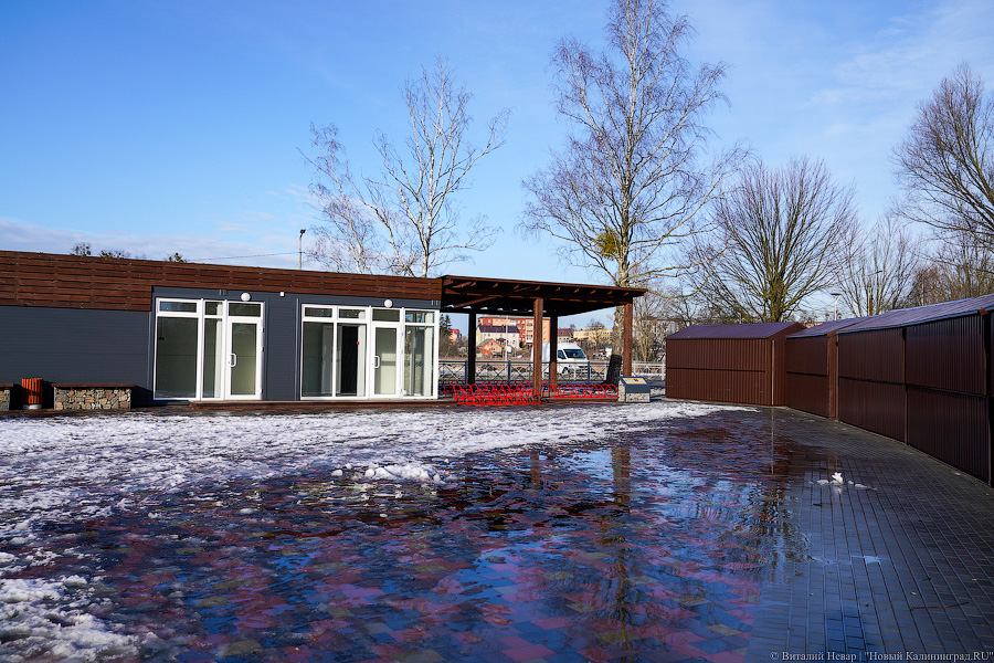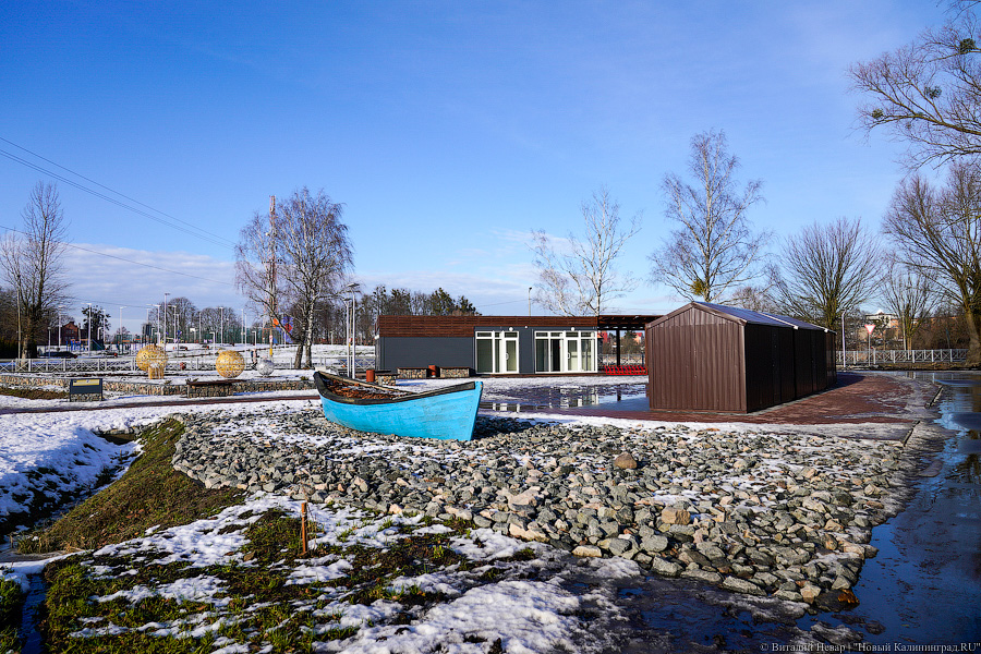 Недалеко от «летней» территории на сэкономленные по итогам аукционов деньги обустроена лодочная станция, которая относится к историко-художественному пространству. Эта же территория, как пояснили в администрации Багратионовского округа, летом должна служить площадкой для вейк-парка. «При проектировании мы перенесли лодочную станцию немножко ниже, и на ней организовано место для вейк-парка. Оттуда можно будет выходить с лыжами, с катерами», — рассказала начальник управления строительства и развития архитектуры Светлана Аблаева.
