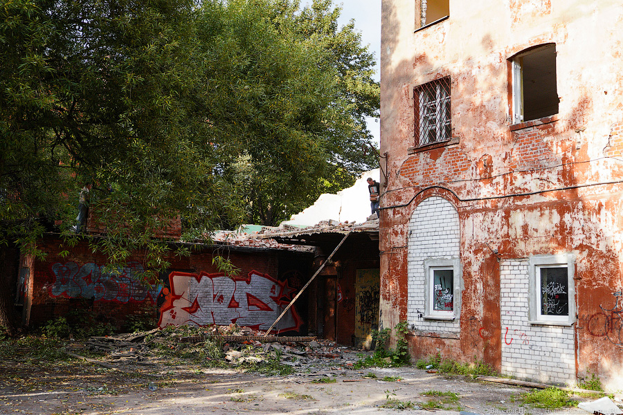 Сейчас в здании на Стекольной, 39-41, снимают оконные блоки. Рабочие также разбирают пристройку. Пока строение огорожено забором только частично, поблизости паркуют автомобили. На одной из стен краской нанесены контакты организации, которая занимается сносом. По указанному телефону корреспонденту «Нового Калининграда» подтвердили, что ведётся демонтаж.