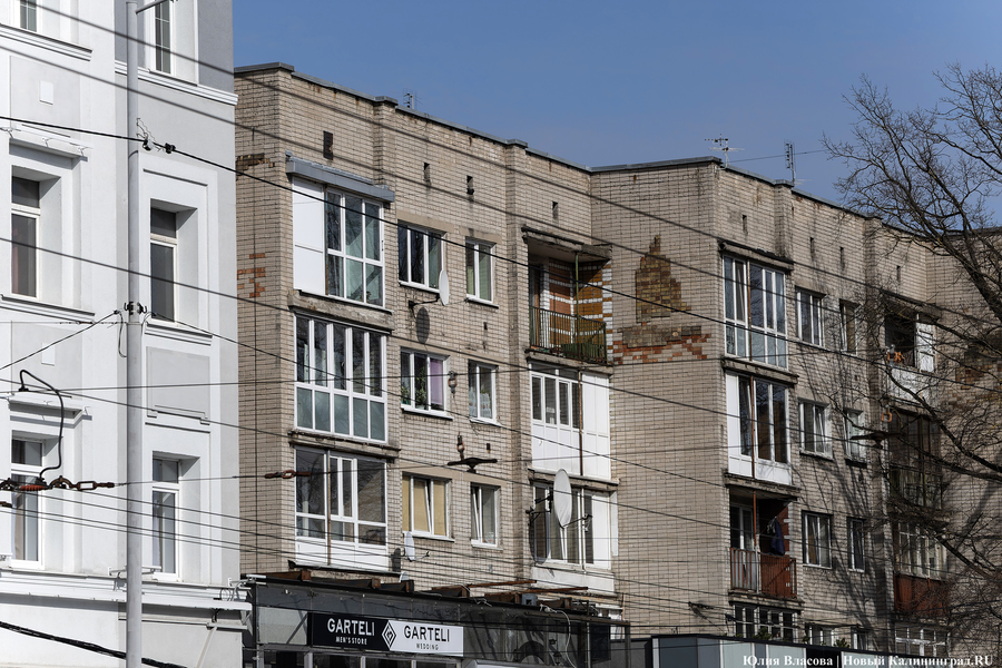 Почему повезло попасть в программу капремонта за счет областных денег именно этому относительно молодому дому (на фото сверху), построенному далеко не в довоенные времена, на первый взгляд, тоже вопрос. Но вполне очевидно, что он своим неказистым фасадом изрядно портит вид одного из центральных проспектов Калининграда. Тем более что соседний дом уже привели в порядок, и смотрится он неплохо.