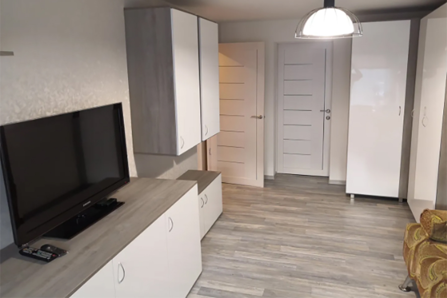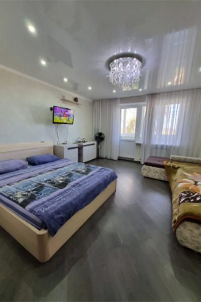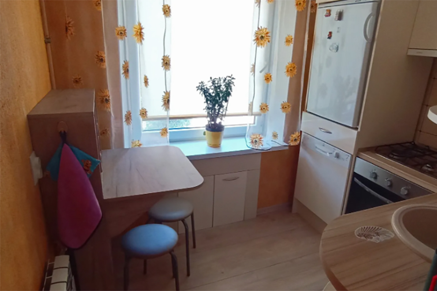 В мини-квартире на ул. Советской площадью 20 м² могут разместиться максимум два гостя. «В квартире всё есть для комфортного проживания — постельные принадлежности, полотенца, фен, утюг, телевизор, стиральная машина, холодильник, микроволновка, газовая плита», — обещает автор объявления. Добавляет очков в пользу этого варианта и «горячая вода круглый год».
