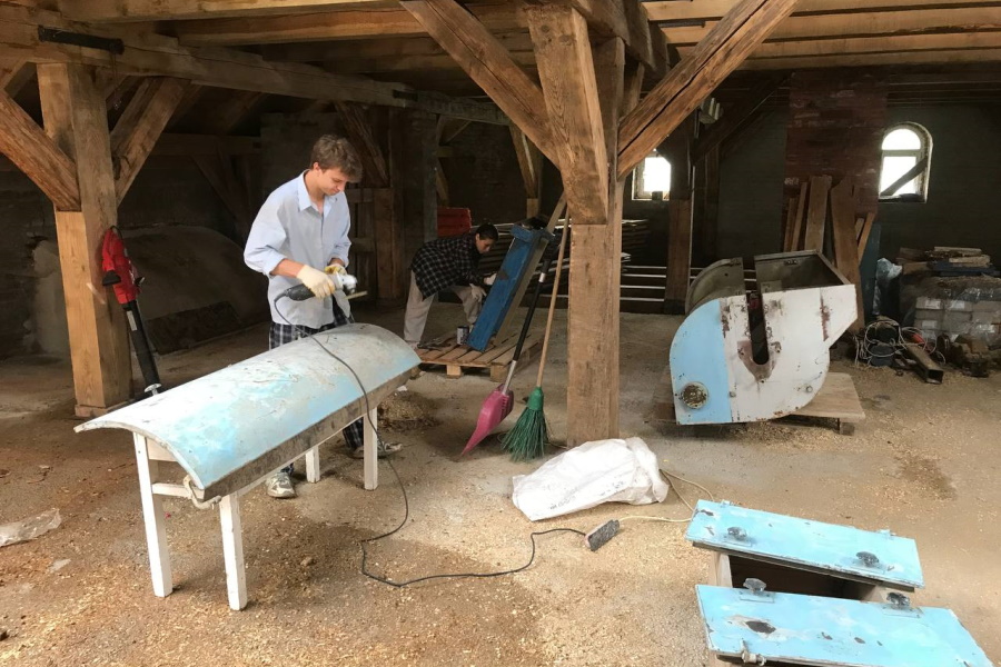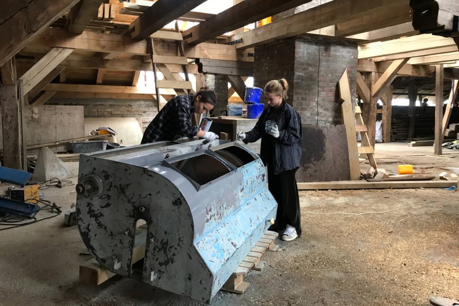 «Так как экспозиция оставшихся механизмов очистки ячменя будет располагаться на третьем этаже солодовни, под самой крышей, одновременно с ремонтом кровли мы ведем работы по обустройству музейных помещений, — продолжил Наталич. — Чтобы наглядно показать архитектурные особенности строительства старинных индустриальных объектов, в одной из частей потолка будут оставлены проемы, через которые, если смотреть вверх, будут просматриваться деревянные конструкции балок и опор».