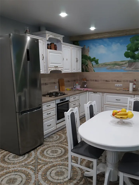За дополнительную плату разнообразить отдых можно в банном комплексе с русской парной, инфракрасной кабиной и соляной комнатой. До моря 340 метров. Гости оценили расположение квартиры, а также «полный набор кухонной утвари, новый утюг».
