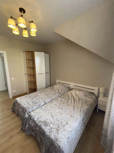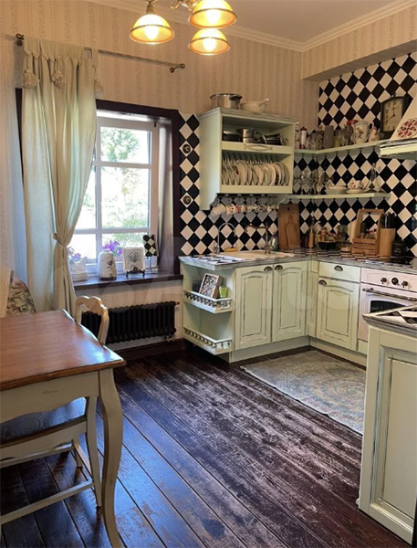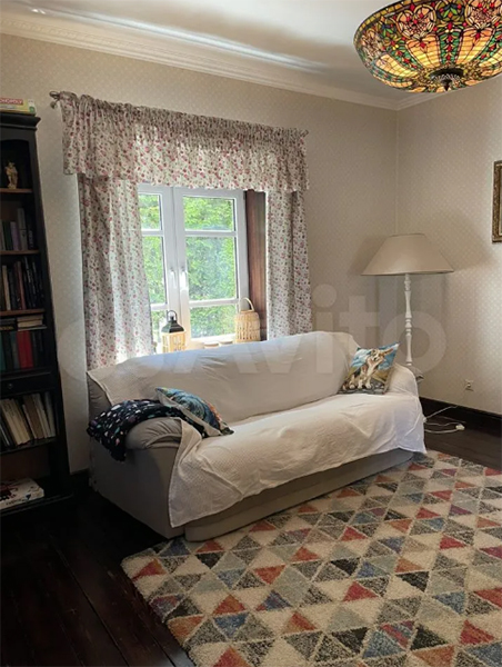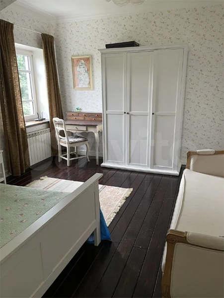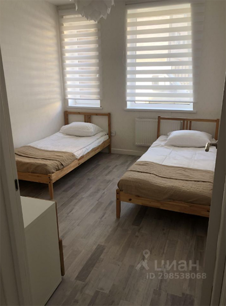 Трёхкомнатная квартира площадью 90 м² находится в Парковом переулке. Максимальное количество проживающих — три. Для них предусмотрены двуспальная и полуторная кровати. В квартире, согласно описанию, есть две спальни, гостиная, кухня, камин, два туалета и веранда. До моря обещают пять минут пешком через парк. Арендодатель не возражает против размещения с детьми. Для бронирования обязателен «личный разговор по телефону».