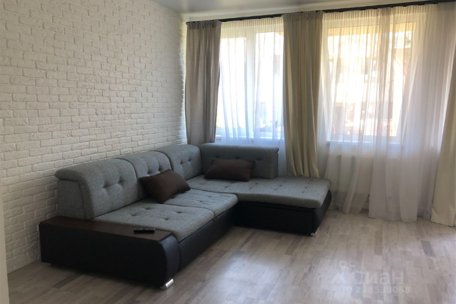 Трёхкомнатная квартира площадью 62 м² находится в ЖК на улице Советской. Там смогут разместиться максимум шесть гостей. Правда, им придётся делить один совмещённый санузел. В не очень подробном описании объекта арендаторам обещают евроремонт, закрытую территорию и 10-15 минут ходьбы до магазинов, ресторанов и автобусной остановки, а также примыкающий к территории комплекса парк Беккера. Отзывов у объекта пока нет.