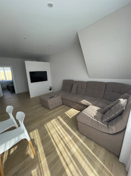 Трёхкомнатная двухуровневая квартира площадью 126 м² расположена в таунхаусе на ул. Советской и вмещает до шести гостей. В их распоряжении три спальни, одна двухместная кровать, два раскладных дивана и один нераскладной. От жары спасут три кондиционера. Владелец обещает «уникальный ремонт с архитектурными решениями», зону патио (собственную террасу на крыше), а также огороженную территорию со своим спуском к морю, от которого дом отделяют 320 метров.