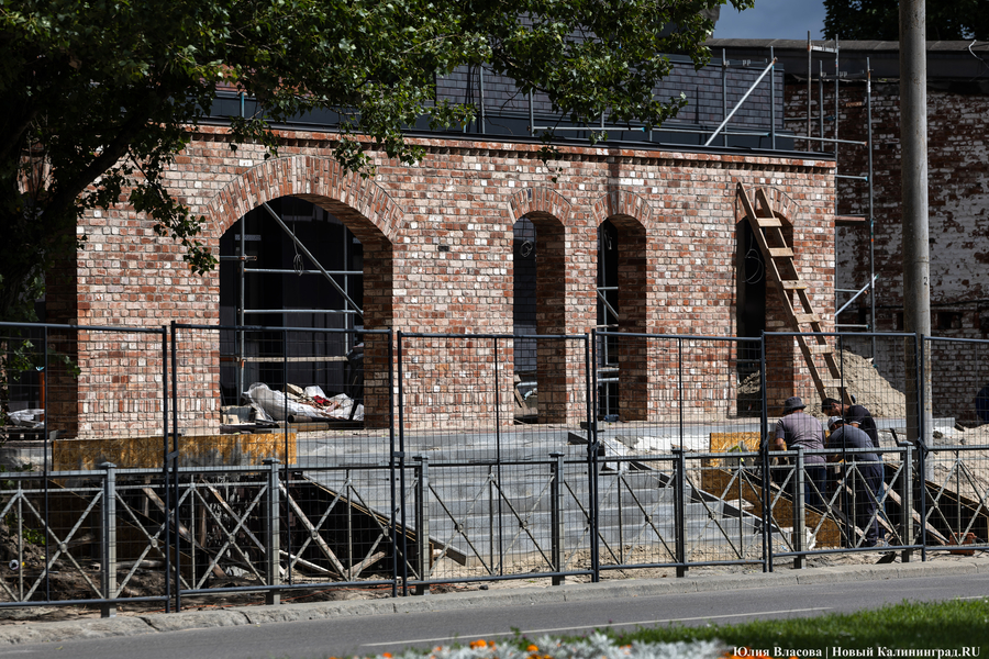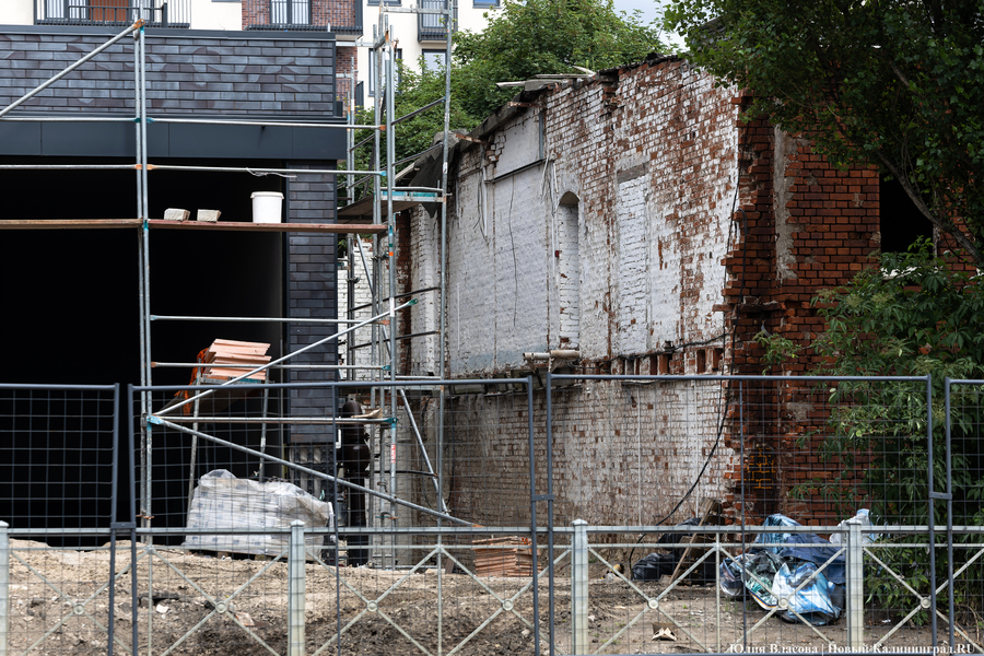 Стоит отметить, что большая часть «исторической» постройки, окружающей жилой комплекс, была пересобрана заново и превратилась в кирпичный забор с арками. Сносить не стали лишь часть казарм, зажатую между ЖК и ТЦ «Калининский». К слову, торговый комплекс на сегодняшний день находится в состоянии сноса. Сам Качанович пояснил, что отношения к новому демонтажу не имеет.