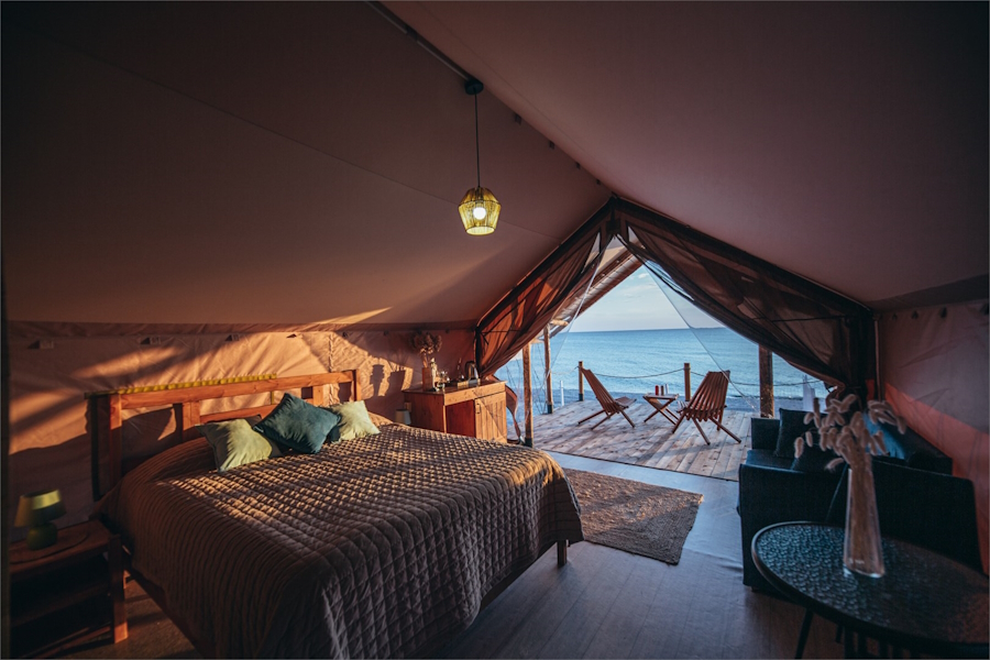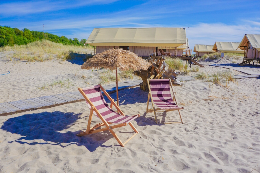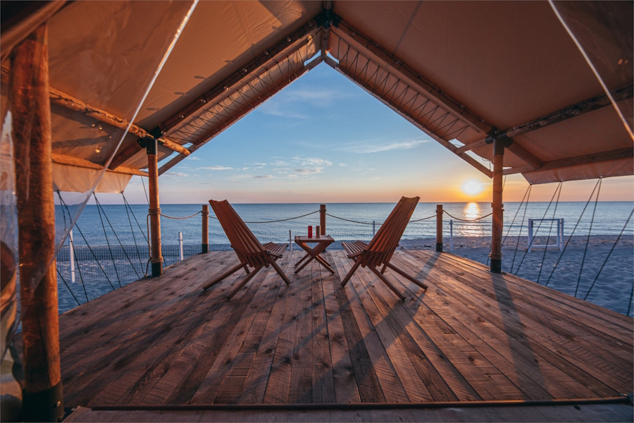 Этот бутик-глэмпинг расположен на ул. Морская Набережная в Янтарном. К услугам гостей 15 «видовых тент-хаусов», которые функционируют с мая по октябрь, и одно бунгало, доступное для бронирования круглый год. На территории есть SPA-зона с чаном, джакузи и шезлонгами, а также открытый бассейн. Морское побережье в шаговой доступности.